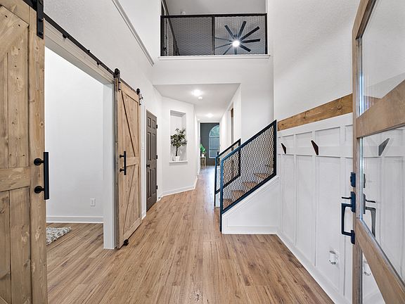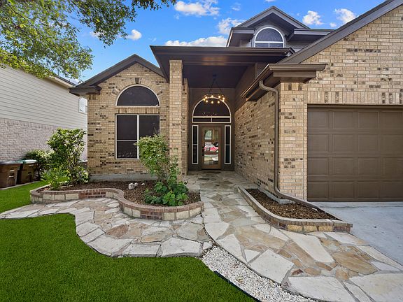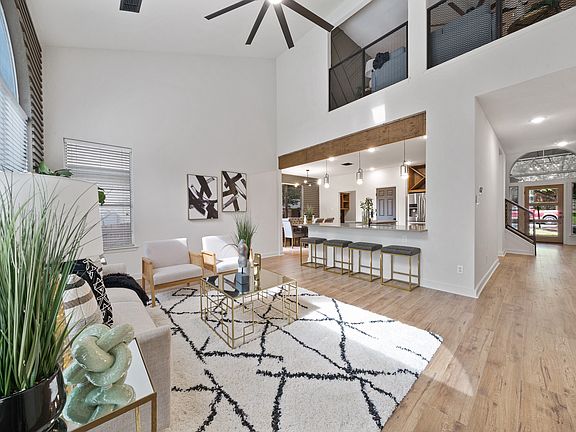 Spacious 4 bedroom, 2 and a half bath home in Alamo Ranch boasting human centered design. Expansive ceilings in entrance and living room with extra large windows & new energy saving solar screens. All new flooring, quartz countertops, custom cabinetry to ceiling with upgraded hardware, stainless steel vent hood with pot filler and tiled backsplash. Bathrooms feature frameless shower enclosures, shower tile to ceiling, custom mirrors, and decorative wall design elements at vanities. Half bath downstairs with decorative wainscot. Modern lighting and plumbing fixtures throughout, custom metal stair railing with decorative accent walls at Living Room, Game Room, Breakfast, Office & Bedrooms. 96" front and back doors, barn doors at Office and Master Bathroom. New Nest thermostat, garage door, and garage epoxy flooring. Brand new Owens Corning 30 yr roof, freshly landscaped exterior with 3' expansion on each side of driveway, and a firepit perfect for entertaining on Texas nights. MUST SEE HOME.
