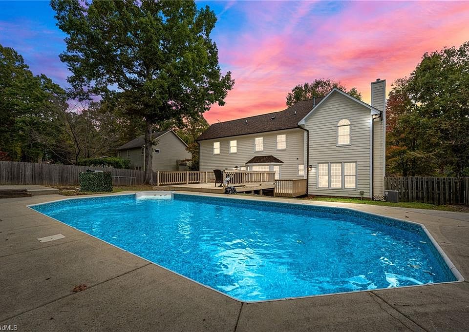 Your Dream Home Awaits – 5 Bedrooms + Pool in prime 27410 location! Step inside this stunning home to find a spacious living room, featuring recessed lighting, a cozy gas log fireplace, and amazing views of your private backyard retreat. The outdoor living space steals the show — a two-tier deck with pre-wired gas lines, overlooking a sparkling in-ground pool and hammock. The gourmet kitchen impresses with granite countertops and sleek stainless steel appliances. Enjoy peace of mind with major updates, including new pool liner, pump and filter, brand new 40-year roof (July 2025), updated HVAC, and oversized 2-car garage, wired with an EV charger! A rare find that combines modern updates, resort-style outdoor living, and an unbeatable location — this is the one you’ve been waiting for!