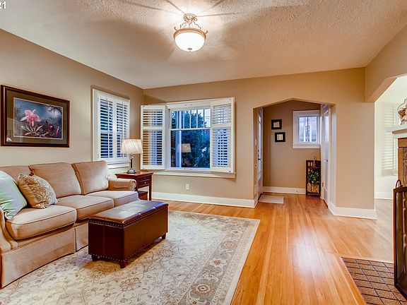Be prepared to fall in love with this adorable Portland bungalow. The home and yard, both well maintained, are located on a quiet street in the cozy residential neighborhood of Foster-Powell. Upon entering, you will see that the home has a nice balance of original details and thoughtful upgrades. With three bedrooms, one full bathroom, and an updated kitchen layout that opens to the dining area, this home has ample space and great flow. Beautiful original hardwood floors welcome you once you step inside. The living room has a lovely wood-burning fireplace, and several windows offering great light in the afternoon. The dining area feels bright and open, and flows nicely into the remodeled kitchen. There are two bedrooms on the main level, one of which has a door leading to the back yard deck, and the other nicely situated for a dedicated home office. The second floor has the third bedroom with a large, long closet, as well as a landing that makes for a cozy reading room. The home is not only charming, but also very functional. The roof is in great condition, upgraded double-pain windows throughout the home, and the detached garage, with electrical service, has new siding. The water main line, all indoor water lines, sewer line, furnace and heat pump were all recently updated as well. The basement is unfinished, but is bright, dry and very clean. It has a laundry area and utility sink, and is ready for both ample storage and workspace. The deep driveway gives loads of off-street parking. One can park right next to the backdoor to load groceries straight into the kitchen. And, last but not least, is the fully-fenced back yard, which feels very private, and is ideal with its well-cared-for lawn, lovely vegetation, and newer Trek deck. Please note: the neighboring property to the east is owned by the Oregon DEQ, and is used as one of their many weather monitoring stations. [Home Energy Score = 4. HES Report at https://rpt.greenbuildingregistry.com/hes/OR10191911]