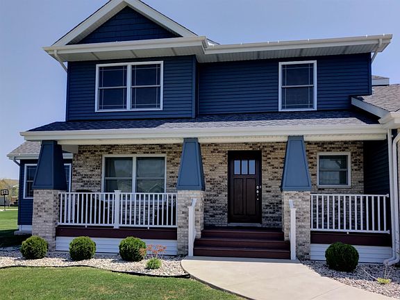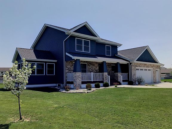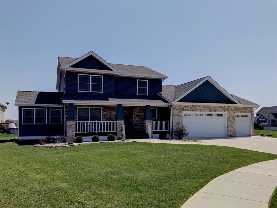 Contemporary Craftsman Style Home with 5 bedrooms sits in a stately position on Arrowhead Ct. Cul-de-Sac. Lovely maintenance free covered front porch welcomes you home! Foyer with Ceramic flooring leads you in towards the OPEN Kitchen, Dining, and Gathering Room! Stunning Granite Counter tops, ample Cabinetry, Island w/ electric, and SS Appliances INCLUDED! Sliding Glass Doors make for a light bright kitchen with access to this AMAZING OUTDOOR FIREPLACE and BACKYARD! There is room for a POOL, PLAY SET and more! The Gathering Room is large and offers the ambiance of a stone fireplace. 1st Floor Master Suite has ENSUITE bath, walk-in closets and it's own Sun Room to enjoy your morning coffee in private. Upstairs has another Master Bedroom w/ walk-in closet, ENSUITE bath, and 3 other large bedrooms. Finished Basement has a Bar Area for entertaining, 1/2 Bath and plenty of room for play and storage. 3 Car Garage is a bonus! Walking Paths and Parks Nearby; NO HOA, NO HOA FEES!