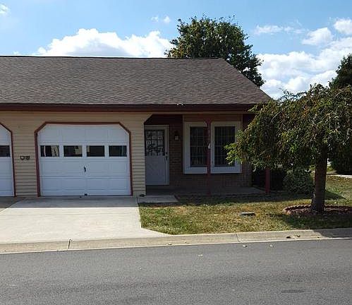 !Sweet duplex in 55+ Crestwood Village - a perfect pied-a-terre with one level living! New roof and gutters! Laminate flooring in foyer, kitchen and dining area for easy care. Large laundry also holds access to one car garage with electric operator. Large living room with carpeting and picture window. Huge bedroom has 2 walk- in closets! Bath has separate makeup area and a large linen closet. Backs to open area for a great view! Crestwood amenities include clubhouse and pool. Enjoy the good life! As-is but great condition.