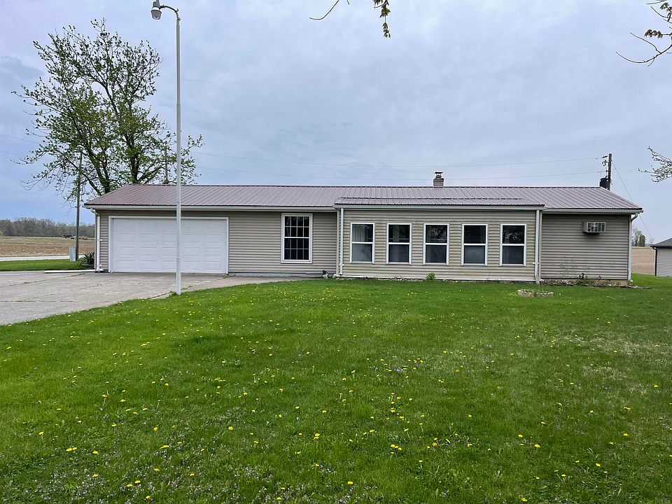 Own a Piece of the Country.....Lake Township...3 Bedroom ...1.5 Bath......Large Garage with Extra Storage off Back of garage.... Spacious Kitchen with Breakfast Nook Area....Vinyl Windows...Lots of Possibilities...Good Square Footage....Full Basement with Fireplace.....Just under 1 Acre Lot....(.78 Acres) ....2 Car Attached Garage......Cozy Enclosed and Covered Front Porch.....Concrete Driveway.....Metal Roof.....Water Softener Stays....Well in Back Yard...........Full Bath up and Half Bath Down......Northwest Allen County Schools .....Work Bench in Garage....Ramp in Garage .....Floor Drain in Garage.....Wall AC....Elec Cooktop Stove....Elec Oven....Elec Ceiling Heat....200 Amp Service ....4" Inch Well????......SOLD AS IS