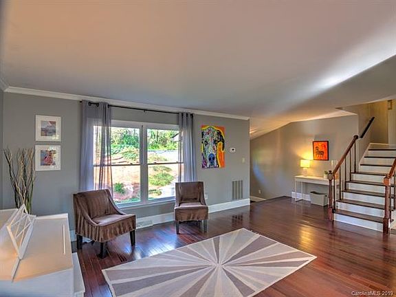 Easy living home in highly sought after, beautiful Mammoth Oaks! Minutes from SouthPark & Cotswold, as well as top rated private schools including Providence Day, Charlotte Country Day, Charlotte Prep, and Charlotte Christian. Strawberry Hill Fresh Market is a 10 min. walk and Shalom Park is 1 mile away. Hdwd throughout main & upper level; craftsman kitchen with views of backyard. Huge master bdrm w/ en suite bath and super-sized bdrms 2 & 3 make for a very comfortable lifestyle. There is a drop chute down to the laundry room off the garage, plus 3 skylights adding natural light to the kitchen & each full bath! Est. half acre lot gives plenty of room for adding on or leave as is & enjoy the nature preserve that is the backyard! Fox, deer, barred owls have all been spotted! Entertain on the 400 s.f. patio out back. Take in the views from the large windows throughout the home! New water heater in 2016. Home has 2 HVAC systems; upper level new in 2014; main & lower level new in 2018.