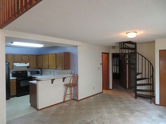This patio home on Evansville's eastside features a spacious living room/dining area and a kitchen with plenty of oak cabinets for storage. All the kitchen appliances are included, plus the freezer in the garage per seller. The master bedroom has a private bath and large closet. The railed loft overlooking living room, could be a third bedroom, has a walk-in closet and ceiling fan. Another finished room off the loft (14 x 11) is included in the square footage. The yard has a privacy fence with a 18 x 10 concrete patio. There is a one car attached garage with a laundry area. House/Property being sold "as is."
