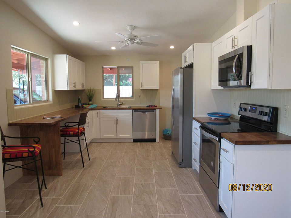 Stellar central custom remodel with Master Bedroom wing addition! All permitted!! New dual pane windows, new 200 amp electrical, vaulted ceiling, new white shaker cabinetry with soft close drawers, sealed Brazilian hardwood counters, recessed lighting, stainless steel appliances & beadboard backsplash in kitchen, fabulous 12 'x 24' stone-look porcelain tile throughout home. Split bedroom plan with Master and 2nd bedroom on one side and two bedrooms on other side of house. Master bathroom has huge walk-in shower. French door to covered patio and large backyard with mountain views. Spacious lot is .20 acres (8880 sq Ft). Abundant room for parking. Gated Side yards. Close to Tucson Medical Center, restaurants and shopping. Don't miss this treasure!
