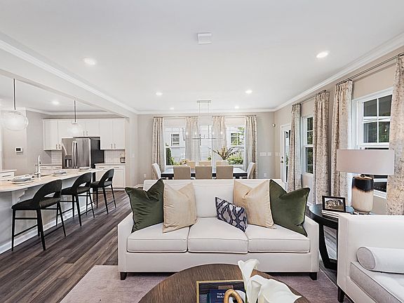 This two-story home boasts a great layout with the main level dedicated to shared living. An open layout flows from the entry to the kitchen with island, Great Room and dining area, then out to the back patio. On the second floor is a central loft surrounded by all three bedrooms including the lavish owner's suite. Optional upgrades available at select homesites. Prices, dimensions and features may vary and are subject to change. Photos are for illustrative purposes only.