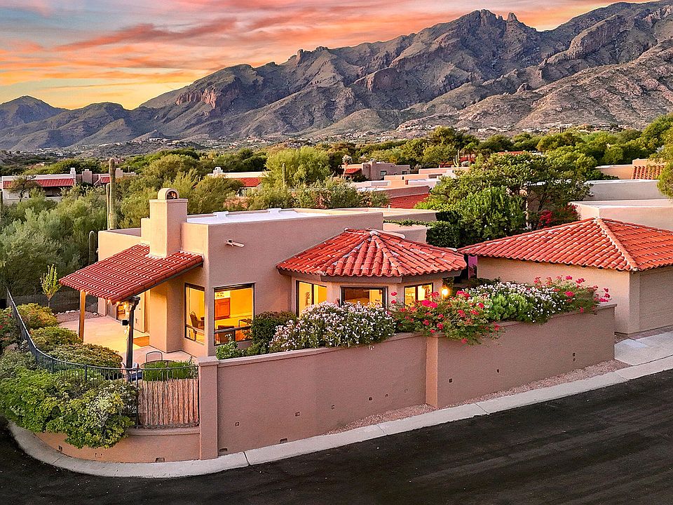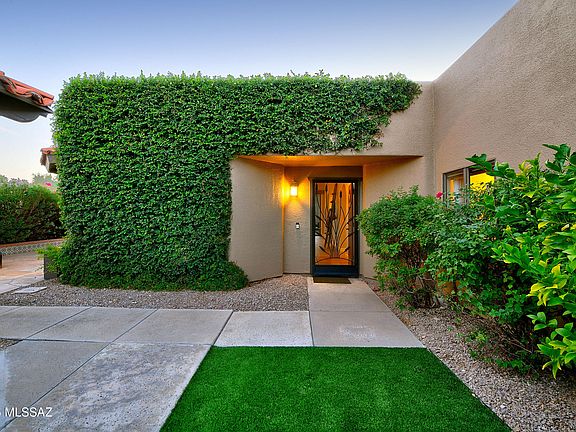 Location, Location! This spectacular home on the golf course in the highly sought-after gated resort commty of La Paloma is a rare find, offering dazzling city views to the south & private open space to the west. Natural flagstone patios open to a charming garden courtyard. Inside, hi beamed ceils, Brazilian oak flrs & abundant natural light accentuate the home's airiness, warmth & open design. Updates incl beautiful quartz counters, induction range, SS appl & natural stone bathroom floors. Spacious primary features a sitting room, walk-in closet & ensuite bath. The lg 2nd bdrm also w/sitting area offers generous guest accommodations & comfort in addition to the den/art studio w/luxury flooring off the Primary. This home's charm is like no other. Commty amenities include a pool & spa