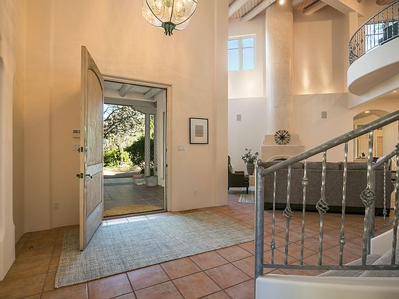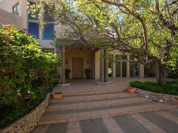 TINNIN FARMS BOSQUE ! Exceptional and lovely- rare southwest contemporary under large cottonwoods on a gorgeous green acre, tended by a talented gardener. Architect designed! Remarkably spacious rooms topped by high ceilings with large beams. Kitchen remodel in 2022 included two double ovens, gas cooktop and dual dishwashers to allow for large scale entertaining. Massive windows capture light throughout the house and 4 cozy fp's. provide warmth in the winter. Renovation began 2021, completed April 2024. New roof plus many custom skylights completed 2024 w/ warranty, new radiant heat boiler installed December 2023, w/warranty. 2 recent AC units, 1 new HVAC warranted unit, home vacuum unit, recent stucco and refreshed paint. New washer and dryer will stay. Loft library is 2nd story.