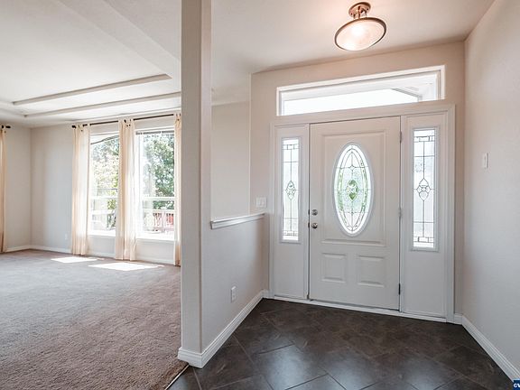 Country property with a 2007 Marlette Pacifica, triple wide home. Home has tile entry & 9 ft ceilings. Laminate floors in fam rm, kitch & 16x9.5 eating area. Kitchen features cherry stained cabs, Corian cntrs & walk-in pantry. Primary bath has tile cntrs, soaking tub & large shower. Seller has fully paid for solar panel system for property. 60x48 RV storage/shop: insulated, 220 wiring, 50 amp hook-up, concrete flr, w/2 man drs, 14 ft RV door. Red barn: partial concrete flr, 1 roll-up door, & lean-to.
