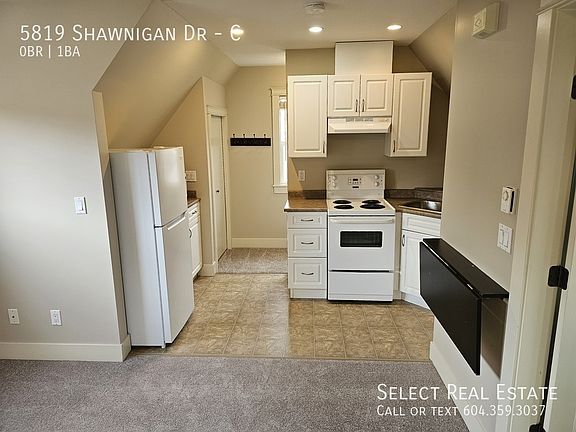 Address: C-5819 Shawnigan Crescent, Chilliwack, BC, V2R 0A8 Description: This private Garrison Crossing studio coach house is located on Shawnigan Crescent. The home contains in-suite laundry a spacious living / bedroom studio area and 3 piece bathroom. This is the perfect starter home for a single person or the couple who are tired of sharing walls and want their own space! The home is located only a few minutes walk from Garrison Village for shopping, recreation, entertainment and everything else you could possibly need! Features: Lease Details Lease duration: 1 Year Deposit: Months Rent. Pet Deposit: 1/2 Months rent No Smoking Property Details Studio Bath: 1 SQFT: 425 Pet Details Pets(Yes/No): Upon Approval Type Allowed: Dog / Cat Number: 1 Size Restriction: N/A Exterior Details BBQs allowed(yes/no): No Parking type and how many: street Yard Usage: NA Yard fully fenced: NA Shed Or Shop Usage: No Appliances Included Fridge: Yes Range: Yes Dishwasher: No Microwave: No Washer/Dryer: Yes Shared Laundry: No Pay Laundry: No Fireplace: No Air conditioner: No Standalone freezer: No Utilities Gas: Included Hydro: Included Internet/Cable: Included Water, Sewer, Garbage: Included Utility Type Heat Source: Baseboard heating Septic/Sewer: Sewer Water Source: City Tenant Responsible for Septic pumping: No