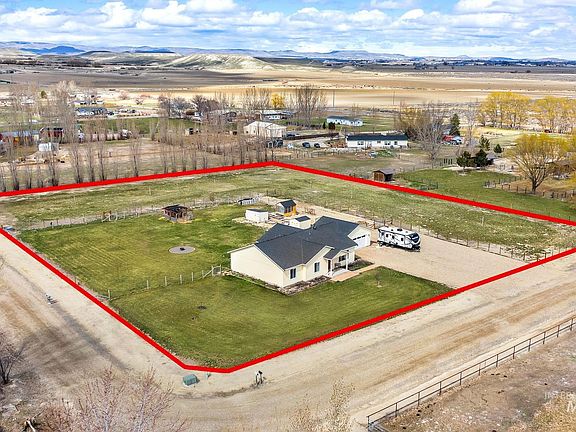 Welcome to the country! Inviting single level & open concept in this newer 2016 well built custom home. Enjoy sunrise and sunset with these expansive views, nestled at the base of the Owyhee Mountains. Pride of ownership throughout the home and the 2.48 acres. Extra storage throughout including 2 pantries and big laundry room! Large, low maintenance gorgeous lawn & fenced pasture. Backyard fire pit and 29x8 covered patio to relax and enjoy the view! Start your own veggies in the on site greenhouse & use the raised garden beds all summer long. Don't forget the custom built chicken house, including the chickens! Plenty of room to park your RV, boat and your toys and enjoy your retreat in this turnkey spotless property. Hunting, fishing & exploring is ready for you w/Owyhee Reservoir, Leslie Gulch & the Owyhee Mountains (BLM property) so close! 10 minutes to Homedale and 30 minutes to access I-84. Owners are moving out of the area and some furnishings and riding lawn mower may be negotiable.