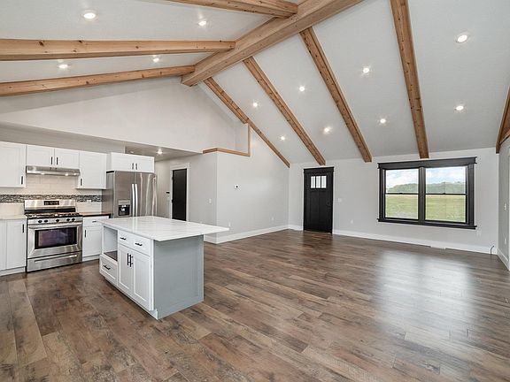 - Walk-In Closet(s), Solid Surface Counters, Kitchen Island, Beamed Ceilings, Vaulted Ceiling(s)