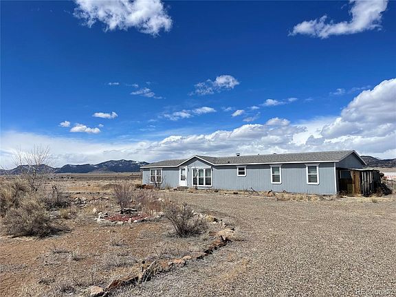 Fresh paint! This clean four bedroom with extra bonus room home in Moffat, Colorado was given an exterior makeover and is ready for new owners! With a little over 2 acres of level, useable yard this is a great place to call home. In Moffat, the skies are big and there are majestic mountains surrounding in every direction. The San Luis Valley is lined with the Sangre De Cristo range and the rolling peaks of the San Juan range. A beautiful place to call home! There are a few bigger cities not too far away for all of the entertaining and amenities you could be looking for. Salida is 30 minutes away, Saguache is 10 minutes, and Alamosa is roughly an hour. This home also features a very open living area with a gas stove in the living room and a large kitchen and dining space. There are two big bedrooms on one side of the home plus a bonus room that could be an office or more sleeping room. The big laundry room has an exterior door that leads to the back yard and dog run. Enjoy the privacy with the primary suite on the other side of the house. It has a big bonus room perfect for a sitting room or hobby space, and a private 5 piece attached bathroom. There is a circular driveway out front with plenty of room for parking or bring in a shed for more storage. We are ready to show this home to you today!