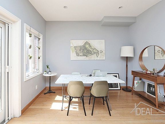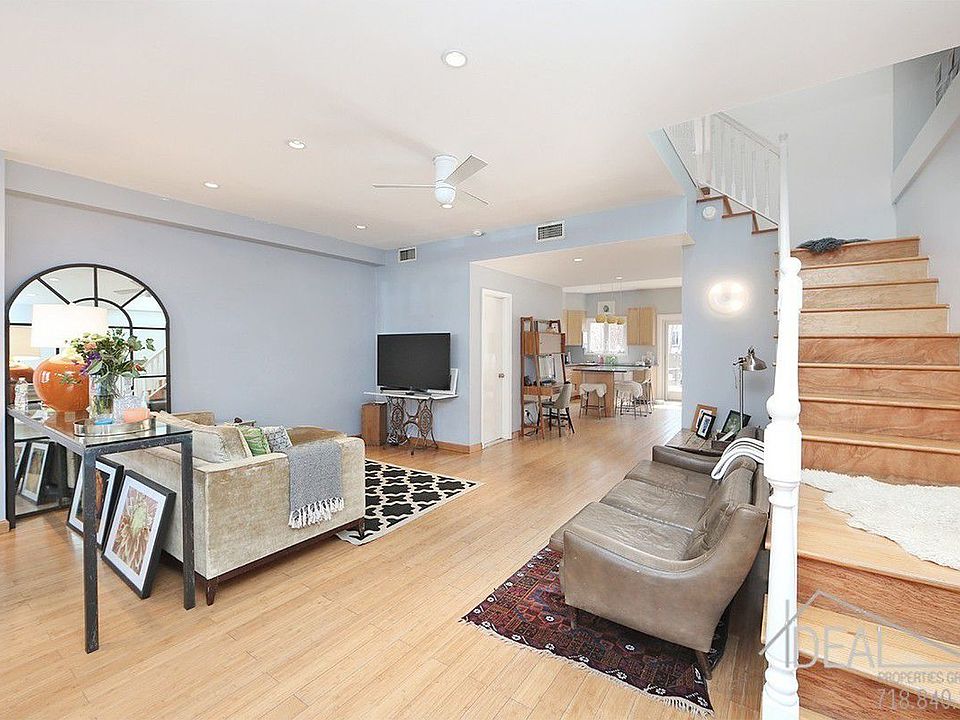 Situated on a beautiful tree-lined block that ends at Prospect Park, this sunny single-family home is sure to please. Gorgeous brick work on the front of the house bring forth a feeling of cozy comfort after a long day in the city. Entering the home, the spacious living room creates an airy, open feeling. Past the powder room, the kitchen / dining room boasts stainless appliances, full-sized pantry, granite kitchen island and formal dining area. Through the sliding glass doors, the large back deck and even-larger back yard is the perfect place for relaxing, entertaining and playing outdoors! Upstairs, two skylights rake in sunlight from dawn to dusk. The master bedroom features southern exposure, walk-in closet, ensuite bathroom with deep-soaking jacuzzi tub with separate shower as well as twin sinks. Two large bedrooms (with ample closet space) and another full bathroom in the hallway complete the floor. There is hardwood flooring throughout the house as well as central air conditioning. Storage space (5' tall) available beneath the kitchen/dining room. Prospect Park, the Prospect Park tennis courts, terrific restaurants and shopping are all within a few blocks. Grocery store three blocks away. Close to the F/G train at Prospect Park.
