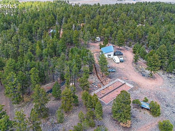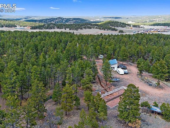 Exciting possibilities abound with this unique property! Nestled on 4.75 acres of picturesque land, you'll find a mix of conifers, aspen trees, and open meadows complemented by stunning views of Pikes Peak from the highest point. The options are endless: start by living in the existing trailer while constructing your dream shop, greenhouse, or another innovative structure on the additional foundation with its own septic system already installed. Consider building your new home here or relocating a modular onto the foundation, transforming the trailer into a charming studio, workshop, or whatever you envision. Alternatively, wipe the slate clean and start afresh with a custom build – the choice is yours! This property is a rare gem in Teller County, offering affordability without restrictive covenants to limit your creativity. Enjoy maintained county roads and easy access to state and national parks, national forests, and pristine lakes and reservoirs nearby. With a touch of sweat equity, this could become your ideal mountain retreat. Don't miss out on this extraordinary opportunity!