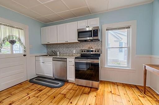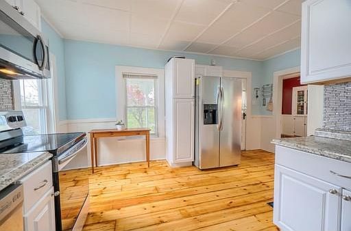 Home sweet home! Nothing to do but move into this charming 4 bedroom, 1 bath Colonial on a quiet street. Freshly painted with a modern color palette throughout, the home is conveniently located near shopping and town amenities with easy highway access for commuters. The first floor has an updated kitchen with new stainless steel appliances and backsplash (2018), updated bathroom (2019) with Bluetooth speaker bathroom exhaust fan, formal dining room with built-in china cabinet, spacious living room with lots of natural light and a bedroom (currently being used as office). Gleaming hardwood floors on the first and second levels. The second level boasts 3 bedrooms with a large master. Full basement for storage. Youâll love relaxing in the warmer months on the elevated seating terrace in the yard, whether you're sipping a cool drink or toasting marshmallows around the fire pit. New roof (2014 for first story and 2019 for second story). Schedule your showing today!