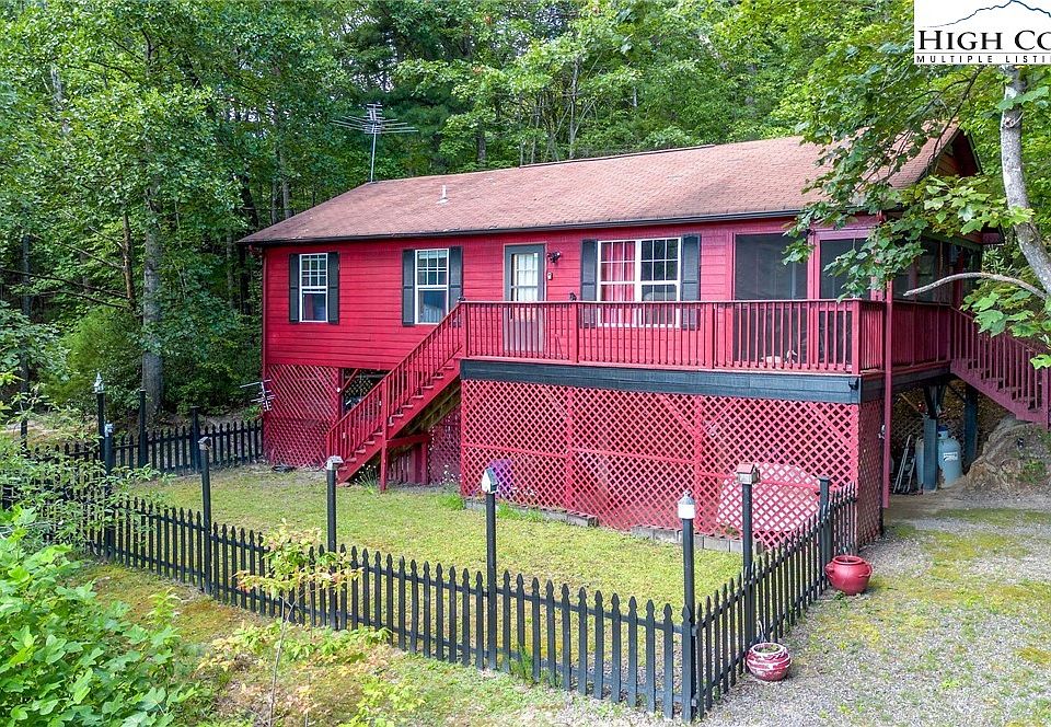 “This charming red home stands out; its bold exterior pairs beautifully with its natural surroundings. Tucked away in the mountains of North Carolina, this property is great for outdoor enthusiasts. The area offers endless opportunities for hiking, hunting, ATV riding, and more. This 2-bedroom, 2-bathroom home sits on over 7 acres of land. The living area boasts a beautiful stone wall with a gas log heater, creating a cozy and inviting atmosphere. The primary bedroom features a free-standing electric fireplace, adding a touch of luxury and warmth. The recently added primary bath includes a spacious walk-in shower, a separate toilet closet, and plenty of closet space. Step outside to enjoy the abundant wildlife, take in the views from the deck. The screened-in porch offers an ideal spot for relaxing while soaking in the natural beauty. Whether you’re drawn to its classic farmhouse feel or its cozy cottage charm, this red house is sure to catch your eye and capture your heart.