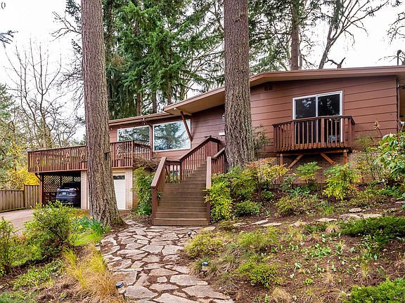 Premier SE Neighborhood--towering pines~flowers~winding paths, decks~city/mountain views & a lovely mid-century home by Tugman Pk~Spencer Butte & Edgewood shops. The open layout is comfortable & versatile. Den w/French doors~large kitchen has an eating area. Cherry floors on main level~rose quartz fireplace~lower level guest room/full bath/laundry with own entrance.