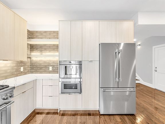 This beautifully renovated South Boston condominium offers modern urban living at its finest. The open-concept design features a sleek kitchen with custom modern cabinetry, Thermador stainless steel appliances (incl. built-in coffee system), a gas stove, and LED-lit open shelving. Stained wood floors flow throughout, while the primary suite includes a private, tiled bathroom with a luxurious multi-head shower. The custom-tiled main bathroom is equally impressive. Enjoy wired ceiling speakers, a private balcony with city and water views, and a private roof deck perfect for outdoor relaxation. The home is equipped with efficient forced-air gas heating, central AC, and on-demand tankless hot water. Two garage parking spaces provide added convenience. Close to shops, restaurants, Castle Island, parks, and the beach, this is the ultimate South Boston location for style, comfort, and convenience.