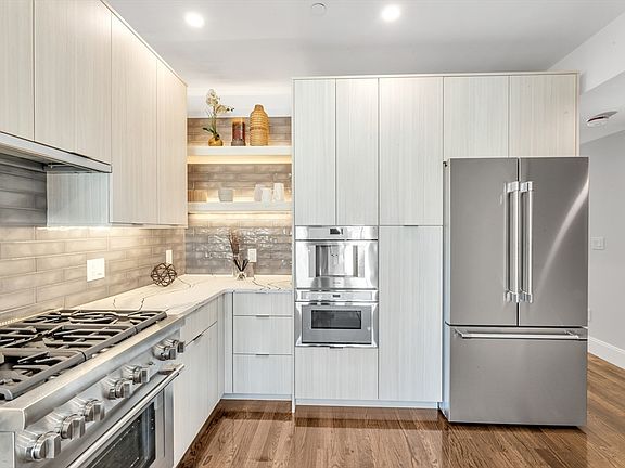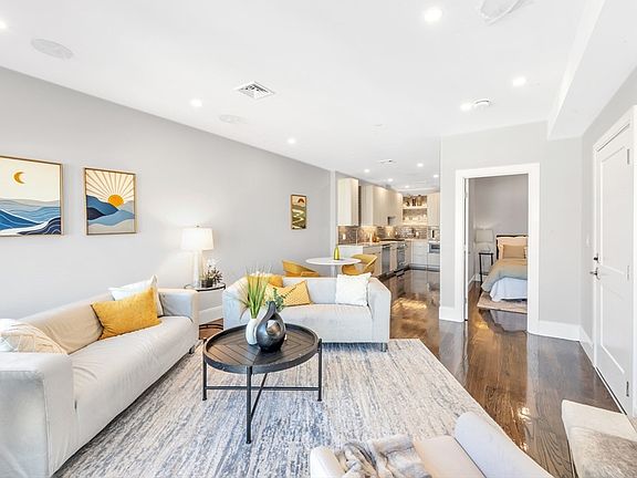 This stunning condominium is located in a fully renovated building in a prime South Boston location, offering modern urban living at its best. The spacious open-concept design features a sleek kitchen with custom cabinets, stainless steel appliances, a gas stove, and open shelving with LED accent lighting. Beautiful stained wood floors flow throughout, while the primary suite boasts a private tiled bathroom with a luxurious multi-head shower. The custom-tiled main bathroom is equally impressive. Enjoy the convenience of wired-in ceiling speakers and controllers, as well as a private balcony with city and water views. The home is equipped with efficient forced-air gas heating, central AC, and on-demand tankless hot water. A garage parking spot is included.Close to shops, restaurants, Castle Island, parks, and the beach, this is South Boston living at its finest. Other Units in Building Released on MLS Soon!