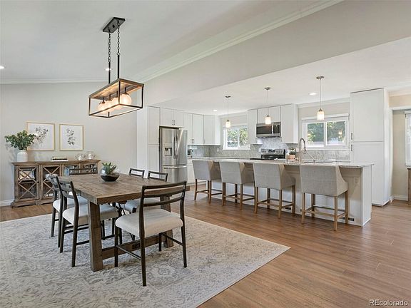 Welcome to this meticulously maintained, beautifully updated home in Littleton. Situated at the end of a cul-de-sac with a huge fully fenced backyard this property is truly exceptional. Architectural details include a stunning open floor plan, elevated ceilings, crown molding and an abundance of windows which flood the home with natural light. With a stunning remodeled kitchen and dining room and gorgeous luxury vinyl wide plank flooring throughout, this home is turn key and ready to go. Finish details are fresh and modern with a purposeful sense of style and tonality that flows through the property. The gourmet kitchen boasts a large center island, upgraded stainless steel appliances including refrigerator, white soft close cabinetry and slab granite countertops and backsplash. This home also features updated light fixtures and all of the bathrooms have been recently updated with quartz countertops, new vanities, new Moen faucets and hardware. The Family Room is warm and inviting with brick hearth, wood burning fireplace and patio doors leading out to the backyard. A cleverly designed Mud Room has built in cabinetry as well as a dedicated dog washing station! The upper level is equally as beautiful with three adorable bedrooms and Primary Suite. The Primary Suite features a barn door leading to the bathroom and large walk-in closet. A fully finished basement with a private Study with french doors, a separate Laundry Room, storage room and a large recreation room make it the perfect space for a media room, game room or fitness area. This home sits on a beautiful lot with an incredible backyard featuring a large patio area for entertaining, mature landscaping, updated sprinkler system and storage shed. Five year roof certification included. Enjoy award winning Littleton Public Schools, great shopping, nearby restaurants, Historic Downtown Littleton and the Highline Canal Trail System. Rarely does a home of this caliber come on to the market. Stunning!