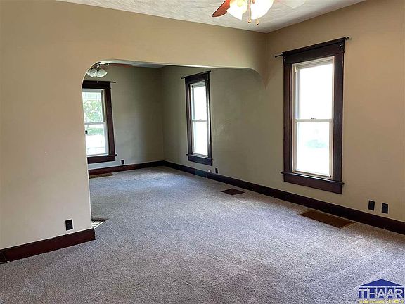 Convenient location on the East side of Brazil for this great 2 bedroom home ready to make your own! This home has a full basement, ceiling fan in every room, and a main floor laundry area. A great front porch for sitting and a back porch that is ready for new screen for shading and privacy. A 2 car detached garage is always a welcome asset! This home has a commercially built handicap ramp and a handicap shower if needed. Nice big yard with trees makes a great place for feeding the birds.