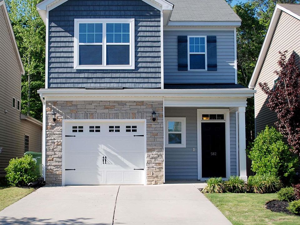 Very well maintained home with an open floor plan. Fantastic laminate floors throughout the downstairs as well as fresh paint. Kitchen boasts granite countertops, tile backsplash, stainless steel appliances and large pantry. Gas log fireplace is the centerpiece of the living room. Master bedroom has large walk in closet as well as a separate tub/shower and dual vanity in the master bathroom. Two good size secondary bedrooms along with a hall bathroom and laundry room completes the upstairs. All carpets have just been professionally cleaned. Fully fenced backyard with a covered back patio backs up to woods for a peaceful space. Single car garage with freshly painted floor and great storage.
