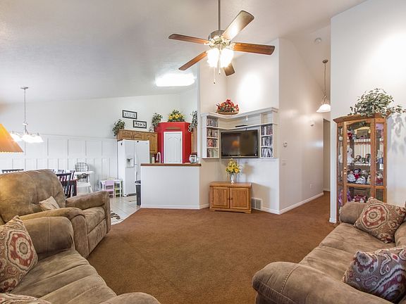 6 bedrooms, 3 bathrooms, 2 family rooms, 1 kitchen, one laundry room, 1 attached two-car garage, fenced backyard, two outdoor sheds in the backyard. Tons of space to park cars in the driveway or the side of the house, since it's a corner lot. Neighbor's driveway connects, making it easy to pull around and drive forward out onto the busy street, so that you don't have to back out usually. Automated sprinkler system. Ceiling fans throughout the house. High-quality central air and forced air HVAC replaced in 2019. Washer/dryer hookups are electric, and the laundry room is on the main level, connecting the living room to the garage. The kitchen has adequate space for a regular sized kitchen table. Built-in dishwasher, garbage disposal, range/oven, and hanging microwave. Fridge location can fit a large fridge. Good amount of space in cabinets, which are in great condition. 9 kW solar panel system hooked up to net metering, has produced 100% of our energy for a family that is often home and leaves temperature between 70 and 73 degrees 24/7. One linens closet near the master bedroom, another in downstairs bathroom, both with lots of built-in shelving. Coat closet with top shelf in entry hallway. Beautiful built-in wood bench with shoe cubbies in entryway, with matching coat hook panel and cabinets above it. Awesome corner pantry closet with built in shelving in kitchen. Master bedroom and two other bedrooms have walk-in closets. Another closet under the stairs in the basement. Even the utility closet has some shelving for more storage. There's an entire cold storage room in the basement with lots of built-in shelving. Most of upstairs has vaulted ceilings, and the living room and kitchen connect seamlessly, giving the home a very open feel. Built-in hanging shelves in the living room for the TV area. The garage has lots of overhanging built-in shelving as well. There is no downstairs door to outside, which means less chance of flooding in the basement. We have never had flooding, even when some of our neighbors did. The Utopia fiber-optic internet line is already hooked up and is owned by the property owner, so that the owner can choose from a number of competing internet service providers for 250 Mbps up/down or even 1 Gbps and pay as little as $30 to $40 a month. This family-friendly neighborhood is close to great schools. Easy access to Layton Parkway, I-15, the new IHC hospital (right across the street), and the Layton Frontrunner (train) station make this a perfect location.