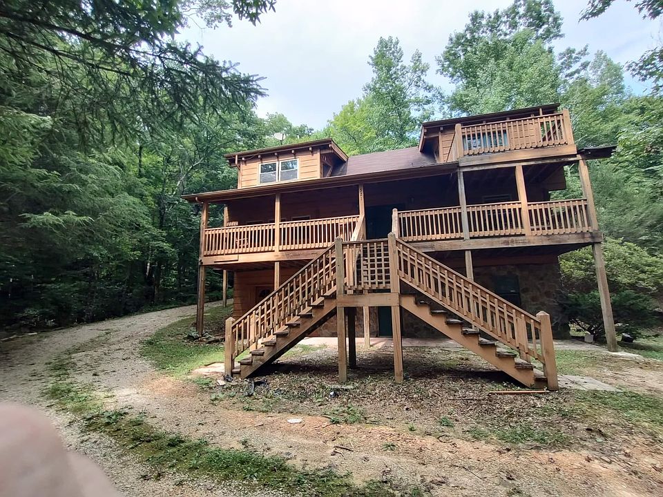 VERY rare Stunning very private dove tailed White Pine Log Home to escape from the hectic world into nature at it's best! The home is rustic and modern at the same time! Surrounded by a bowl of mountains you feel like Daniel Boone! Water fall, creeks, a river and very kind of tree imaginable for the area surrounds you with shade and a rainbow of colors in the fall. It is on the side of a mountain with a private drive. It has a 40 foot front porch on the front with a swing and rockers. The top level 40 feet up has 2 balconies hat give 360 views of the entire property. It looks down onto the creek and pasture and the wildlife, goats and cows! It has a real stone fireplace, separate dinging area plus bar with picture windows.The appliances are stainless steel and the kitchen has been upgraded. The sweeping A frame ceilings are amazing and the catwalk across the top gives you a view on both levels which people love! The 1st floor could easily be a private apartment or mother in law suite with it's own entrance and private bath. I am the direct owner and I like to speak with interested possible renters so I can introduce myself and find about your needs so we can hopefully make this dream home your home! Oak ridge is only 7 miles away and has all that would would ever need such as stores, food and entertainment. Gatlinburg and Ashville or just over an hour away as well for weekend getaways! This property Won't last long! Fill out an application, lets talk and make an appointment to come and see this unique and special haven in the woods! This property has it all! AMAZING FREE NATURAL GAS SAVES HUNDREDS! Renter pays for electricity, water and Internet. The house is well insulated.
