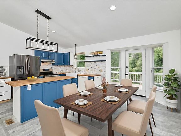 Discover this beautifully updated 4BD/2.5BA split-foyer home, featuring a fresh, modern feel with new paint, flooring & lighting. Enjoy the charm of a cozy bay window seat with hidden storage & a welcoming living room with a classic brick wood-burning fireplace. The chef’s kitchen shines with butcher block counters, farmhouse sink, custom shelving, a stainless steel French-door fridge, DW & smooth-top range. The dining room opens to a sprawling deck with composite flooring, perfect for outdoor entertaining & overlooking a fenced yard & wooded common ground. The main level boasts 3 bdrms & 2 full baths. The primary bedroom adjoins the 2nd bdrm where a closet was removed, though it's easily converted back to a traditional layout. The finished lower level offers a massive bonus room that could be used as a 4th bdrm--plus half bath, laundry & unique storage solutions. A spacious patio complements the oversized 2-car garage. Located in Seckman schools. Some photos are virtually staged.