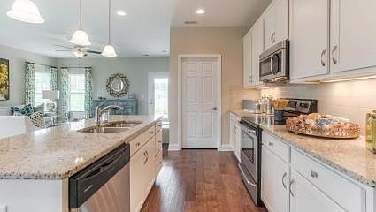 The Harding Plan is a Two-Level Master Down with 4 Bedrooms, 3 bathrooms, Media Room with Storage, and Covered Rear Porch. This home features a Gourmet Kitchen w/ Quartz Counters, Luxury Owners Retreat w/ Tile Shower in bath, 5'' Wide Hwds t/o incl Stair Treads, and the finer details like Crown Molding. Price is promotional with included incentive and is tied to preferred lender and title company.