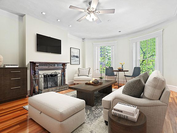 Available NOW - AUGUST FREE. South End 1 bedroom plus study with large private deck. Freshly painted second floor apartment with 800+ sq/ft features high ceilings, hardwood floors and oversized windows. Large bow front living room with decorative fireplace and adjacent plus room, which makes ideal home office or guest bedroom. Large kitchen with plenty of storage and new refrigerator and dishwasher. Bedroom with new carpet, 3 large closets and en-suite bathroom. Private deck off the bedroom with city views is perfect for summer dining and entertaining. In unit laundry, central AC & heat included. No pets. No smoking.