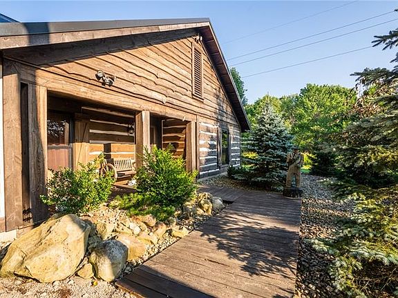 Welcome home to this one of a kind, 6 year old country abode with Rustic Hemlock exterior on your own private 5 acres! You will be amazed at the quality craftsmanship that abounds inside and out everywhere you look! Bring the nature of the outdoors inside with the matching log furniture being included in the sale. Hemlock interior throughout from the covered front porch that leads into the 5x8 foyer, down the hallway to the spacious great room with wood, vaulted ceilings, floor to ceiling windows and the gas burning FP with massive stone hearth. The open design of the house creates a homey ambiance as the FR continues into the custom kitchen and the 19x14 sunroom that overlooks the maintenance free landscaping w/ fenced pet area. 3 large bedrooms, 2 full baths, 13x9 laundry off the one car attached garage with workshop area. 2 pole buildings for RV or boat w/ 400 amp, huge shed and greenhouse w/ electric and water, cool fire pit area. 4 acres of woods behind the house, 4 miles to I-79