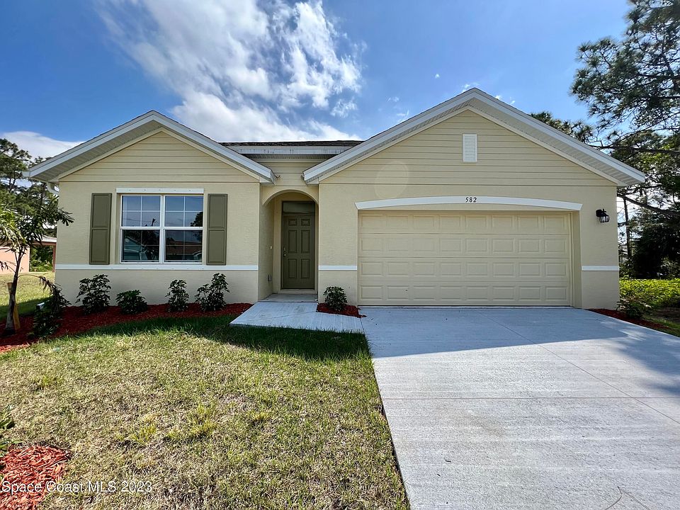 Brand new traditional Cali, 4 Bedroom, 2 bath, 2 car garage. Open floor plan with large kitchen island and walk in pantry. Primary bedroom easily fits king size furniture and more, with an oversized walk-in closet and large linen closet. Tile everywhere except the bedrooms. Kitchen boasts 36'' cabinets, range, microwave and dishwasher. Smart home package along with Trussed covered lanai. Fully sodded lawn, shrubs and mulch upfront. All homesites are large enough to accommodate a pool down the road. No HOA rules or fees. Photos used for illustrative purposes and do not depict actual home. Available NOW.
