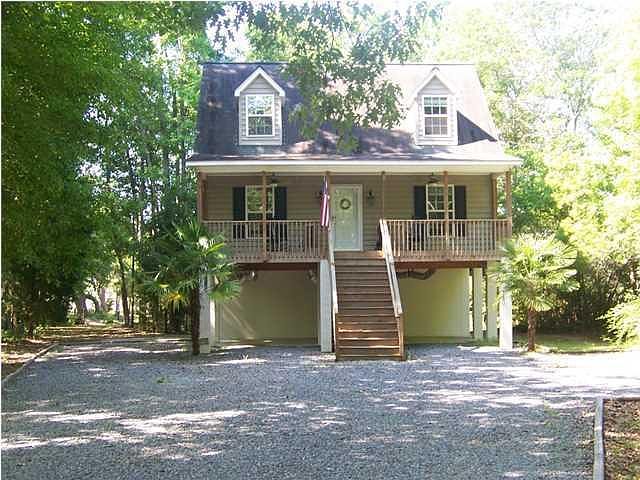 The acreage on this 2.2 acre property is beautiful with draping Oaks and a marsh view. Nice size eat-in kitchen with all appliances conveying. The master suite is downstairs with two bedrooms, bath and laundry room upstairs. Home has been freshly painted and new carpet in the bedrooms and stairs. Downstairs is an enclosed ''basement'' area that can be used as a workshop with a full bath! Deck off of the kitchen overlooking the very private yard and pathway to the crab dock. Current flood insurance is transferable and approximately $460/year for primary resident.