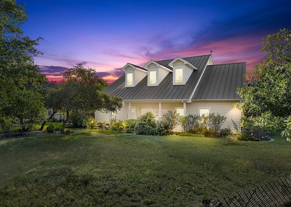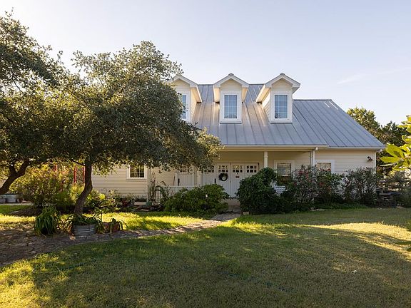 Southern charm in the Hill Country! Wooded, desirable Rocky River Ranch, 15 min from Dripping Springs, Wimberley and Blanco. Unique dog-trot style home on 5 acres, perfect for entertaining and enjoying... indoor/outdoor living, screened-in porch, patios, stone pizza oven! Great room features cook's kitchen with custom cabinets, built-in refrigerator/freezer, butcher block island, room for a large dining table, and ceiling to floor stone fireplace. 1 bedroom upstairs, more space to finish out. 39,000 gallon rainwater collection system provides household water. In-line generator.