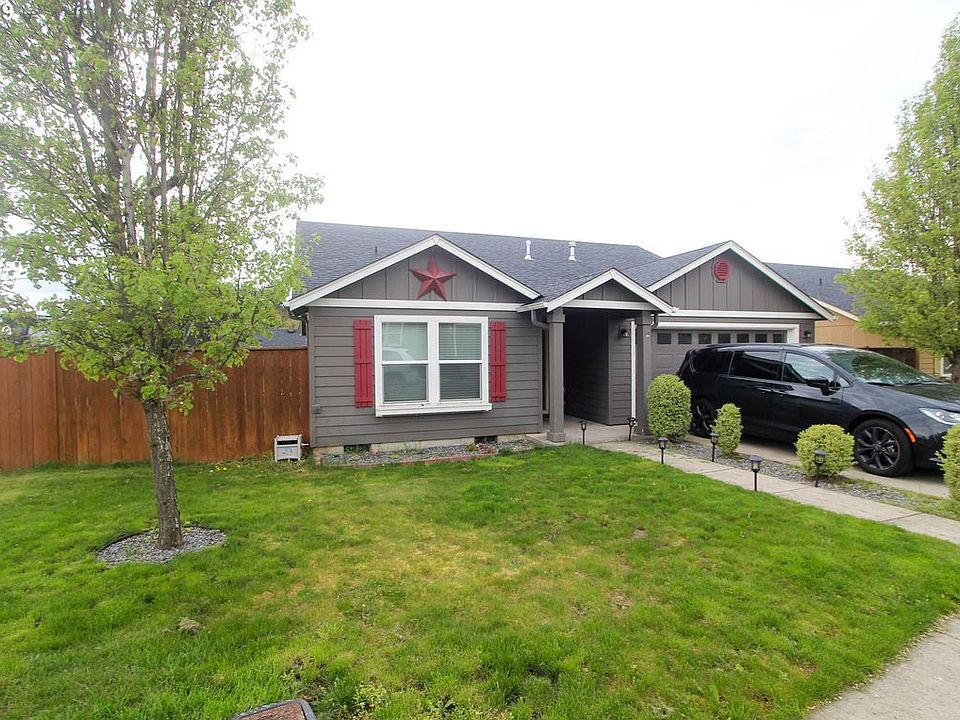 Great open floor plan in this newer home. Beautiful new laminate floors throughout. Wide entry into greatroom feel. Kitchen has large island, slider to HUGE back yard. Living room has gas fireplace and vaulted ceilings throughout. Bedrooms all large, master suite has dual sinks and two walk in closets. Large corner lot, ready to go!