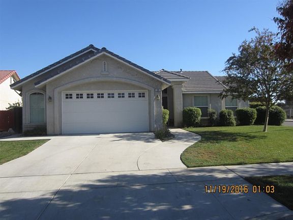 Desirable home in City of Kerman. Home has open concept floor-plan with open views to Great room, Kitchen, and Dining areas. Kitchen boast of a new Quartz counter center island, ample storage, and counter space. Large dining area with French Doors to rear yard, and covered patio area. Master suite has large walk-in closet, ceiling fan, door to rear yard, with a large master bath, and handicap shower area. Rear yard has several fruit and citrus trees, large area for entertaining and family fun. Large oversized garage is great for storage, tools, and toys! Wrap up this home for the Holidays!