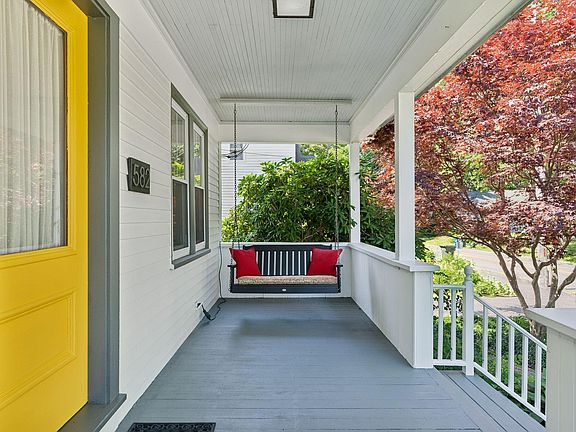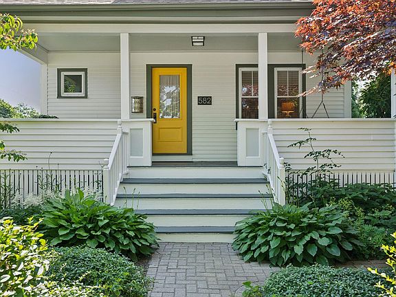 Absolutely charming 1935 bungalow in sought-after Meetinghouse Hill! A lovely deep porch and serene gardens welcome you to 582 Sawyer Street. This renovated 3 bedroom 2 bath property has been updated for energy efficiency while retaining the period details that make this home so special, including original molding and trim, wood floors, door hardware, and high ceilings. The 1st floor offers a spacious living and dining room, two well-proportioned bedrooms, and a fully renovated bathroom with a soaking tub. The sunny kitchen has ample cabinet space and a pantry with direct access to the private backyard. The second floor has a wonderful ensuite with a bedroom that feels like a respite from the world outside, an office/reading nook, a walk-in closet, and a full bath with a custom tile shower. The basement offers plenty of storage and room for projects, along with a wood stove. Outside is a quiet oasis professionally landscaped for easy maintenance and privacy. Located in close proximity to Willard Beach, neighborhood shops and restaurants, and just a quick drive over the bridge to Portland's vibrant downtown. A wonderful place to call home!