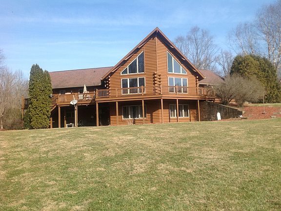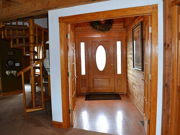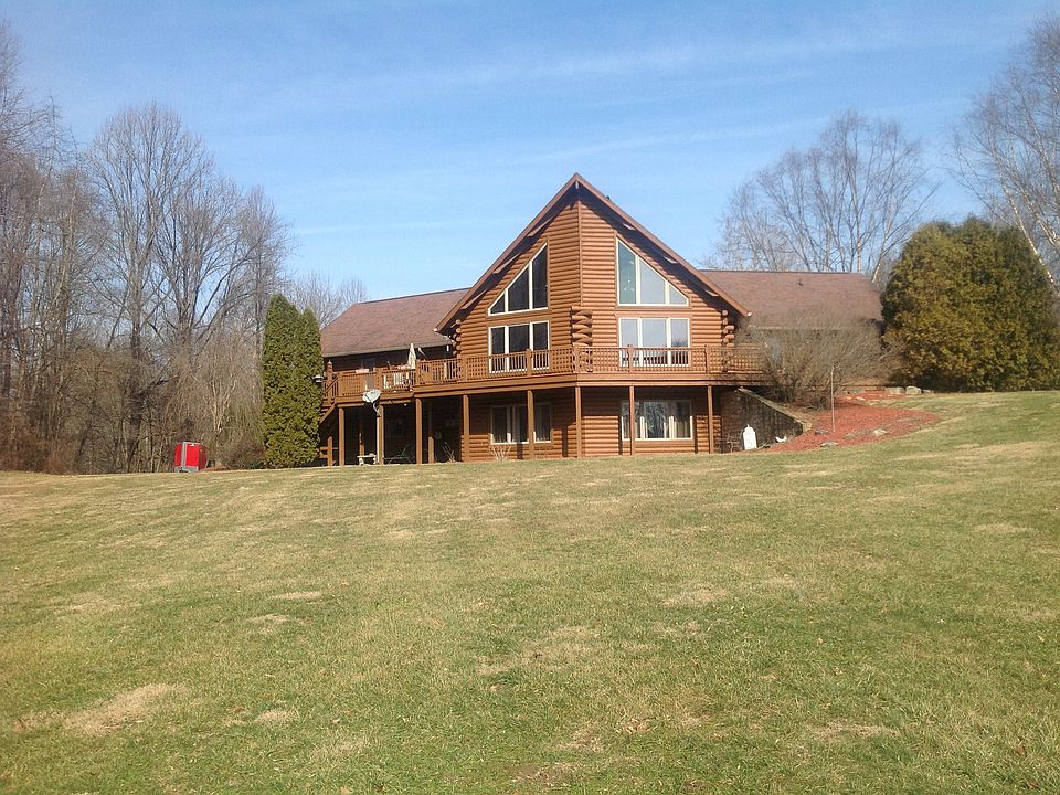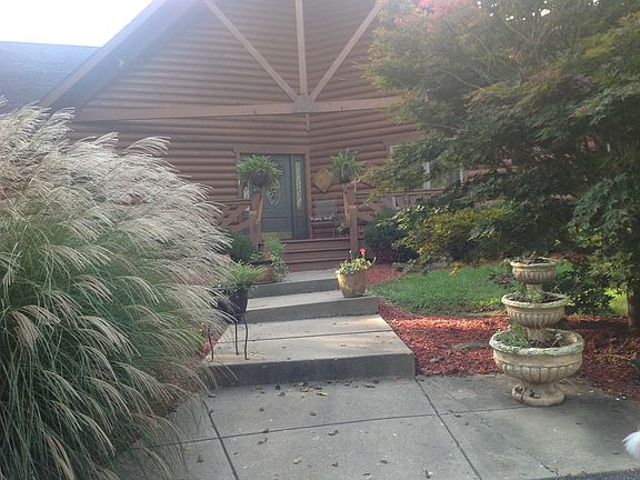 This amazing log cabin sits on 5 acres of yard, woods, and pure nature. Floor to ceiling windows in great room with 25' Cathedral ceilings and a Brown County stone wood burning fireplace. Travel through this BEAUTIFUL home to the updated kitchen with granite countertops, Large master bedroom suite and a loft with a spectacular view overlooking the great room and the view of the vast back yard and woods. Also enjoy the view from the complete wrap around porch and walk out basement.