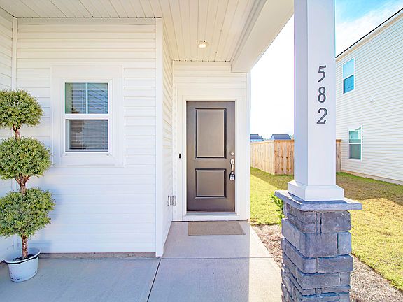 Welcome to this meticulously maintained 3-bedroom, 2-bath ranch-style home, boasting modern amenities and a convenient layout for comfortable living. Built in August 2022 and still under builder warranty, this property offers the perfect blend of new construction charm and peace of mind.Step into the heart of the home and discover a fully equipped kitchen, complete with granite countertops, stainless steel appliances including a gas range, under cabinet lighting, vinyl flooring, and ample cabinet storage. Whether you're cooking for family or entertaining guests, this kitchen is sure to impress.Retreat to the privacy of the master bedroom, tucked away at the back of the home and featuring an en-suite bathroom with a double vanity, marble-like ceramic tile, a stand-up shower, and a spacious walk-in closet. Two additional bedrooms and a second bath are situated towards the front of the house, offering flexibility and convenience for family members or guests. The laundry room, conveniently located off the garage, serves as a practical drop zone/mud room, complete with low-maintenance ceramic tile flooring. Step outside onto the covered porch and take in the serene view of the elongated yard overlooking the serene pond. Whether you're hosting outdoor gatherings or simply enjoying the peaceful surroundings, this backyard oasis has something for everyone. The neighborhood amenities include two large resort-style pools, play parks, a dog park, and expansive green spaces, perfect for outdoor recreation and leisure. With walking/jogging trails and neighborhood shopping just a stone's throw away, convenience and comfort await you in this welcoming community. Don't miss out on the opportunity to make this house your new home!