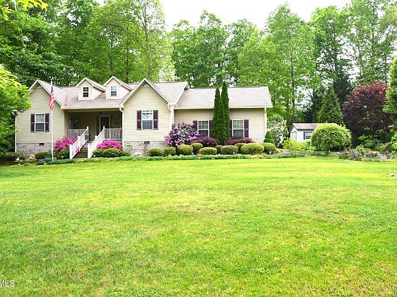 BEAUTIFULLY LANDSCAPED setting on nice quiet street in SUNSET RIDGE. This 3 bdrm, 2 bath home has been well cared for. It has oversized garage, covered front porch, 11x20 screened covered deck, 11x16 open deck, fenced back yard, leaf filters on gutters with new downspouts, storm doors on all exterior doors, cute outbuilding and paved drive all on .75 acre lot. Home has split bedrooms, guest bath has top of the line Safe Step Tub, new water heater and refrigerator, ceiling fans in most rooms and on deck, master bdrm has large closet, step in shower, linen closet and double sinks. Call for appointment to see today. All information to be verified by buyer.