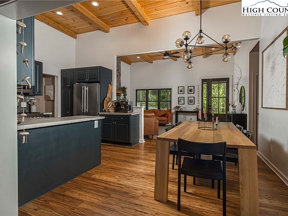 Welcome to your dream home! This stunning property offers the ultimate convenience of one-level living, just 10 minutes from King Street in downtown Boone, and best of all—there are NO RESTRICTIONS! As you arrive, you're greeted by a charming covered porch. Step inside to discover a beautiful hearth room complete with a wood-burning fireplace (w/ gas starter)—ideal for those chilly evenings. The open living spaces are flooded with natural light, thanks to the expansive 3-panel slider that showcases serene views of the outdoors. Vaulted ceilings with timber beams add a touch of mountain elegance, while the new wall of built-ins in the family room offers both style and functionality. Enjoy outdoor living on the sun porch, equipped with a gas line for your grill and an automatic shade awning that makes entertaining a breeze. TWO CAR GARAGE, a fenced-in yard, and a fantastic kids' playground! Plus, a WHOLE HOUSE GENERATOR ensures your peace of mind. With room to expand and stunning updates throughout, this property truly has it all! The updated kitchen features concrete countertops and modern appliances, including a 36" gas range and a French door refrigerator with double freezer drawers. The primary suite is a true retreat, complete with a gorgeous en suite bathroom, while two guest bedrooms share an updated full bathroom. The two versatile bonus rooms offer endless possibilities! One with a built-in mini bar and generous storage closet could make for a grand office, kid's playroom, personal wine cellar or trophy room. The other bonus room has a half bath and sliding glass door that could be great as a game room, workout studio, additional sleeping area, movie room, you name it! With an elevation of ~4200 feet, you'll enjoy both summer breezes and winter snow. Currently a primary residence, this home also allows for short-term rental opportunities! Schedule your tour today and experience everything this incredible property has to offer!