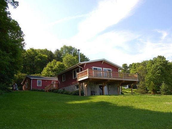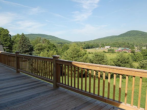 PANORAMIC MOUNTAIN VISTAS from a spacious wraparound deck overlook your own 11 acres and give this contemporary home a special setting! And for those who enjoy watching wildlife, the wetland area along the far boundary of the property is a real plus. The tastefully updated kitchen, light and airy living room with cathedral ceiling, and 3 generous bedrooms make this an easy place to live--the home also offers 2 full updated bathrooms. One bedroom is on the main living floor with 2 bedrooms and a laundry room on the basement level--there are sliding glass doors upstairs and down. There is a wood stove in the family room on the basement level which easily heats the whole house, backed up with baseboard heat. A 2 car garage with a work bench, is across the front deck from the house with easy access and plenty of storage for your tools and outdoor equipment!! The home is located on a quiet road conveniently just minutes from the village of Stamford.