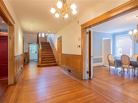 Desirable North of Forbes location. Step into the freshly painted grand entry featuring restored Pecan wood work and newly polished hardwood floors. A formal living and dining off center hall entry, both with marble surround fireplaces. Off the living room is a comfortable family room with built-in & large picture windows overlooking the back patio/yard. The spacious kitchen has newer appliances including 3 ovens, gas cook top, refrigerator and full size eating area. 2nd floor has 4 bedrooms with lots of natural light including master with en-suite 4 piece bath. Additional 3 bedrooms and captive room with wonderful built-ins and 1.5 bathrooms. 3rd floor with 2-3 Bedrooms and full bath. The finished lower level is complete with a Game Room, Den, Full Bath, and Laundry. All windows are multi-pane throughout. Zoned central air. Long driveway that leads to an over sized 2 car detached garage. Easy walk to shops and restaurants with universities, medical centers close by.