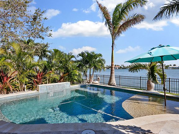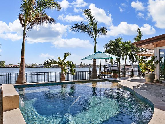 Absolutely gorgeous! That's the best way to describe this beautifully renovated waterfront home in the highly desirable Bahia Shores neighborhood of St. Pete Beach. The owners of this home have left no stone unturned in the renovation process. This home is an absolute boaters salt life dream! You will enjoy expansive picturesque water views with quick access to the Gulf of Mexico and the areas best waterfront parks and beaches. This home sits on 85 feet of exquisite water frontage where you will enjoy tranquil views of dolphins, manatees, and various other majestic fish. Exterior upgrades include a trex deck dock with 16,000# boatlift, underwater dock lights, sea wall cap, pool with sun shelf and waterfall, new tile roof, garage door, all new tropical landscaping, lifetime powder coated architectural fencing, outdoor lighting, private outdoor shower, weather proof shed, generator, and paint. The interior home is designer perfect and features new travertine tile throughout with all new Simonton windows and PGT sliders with the very best energy and impact ratings. The homes AC system is brand new and features an additional split system for entertaining with sliders open. The kitchen boasts an open concept plan conducive to entertaining numerous guests. The counters are thick spun marble set on beautiful hardwood custom cabinets with glass tile backsplash, stainless steel appliances, and accents. There is simply too much to mention here so take the tour on the attached link for more information on this home!
