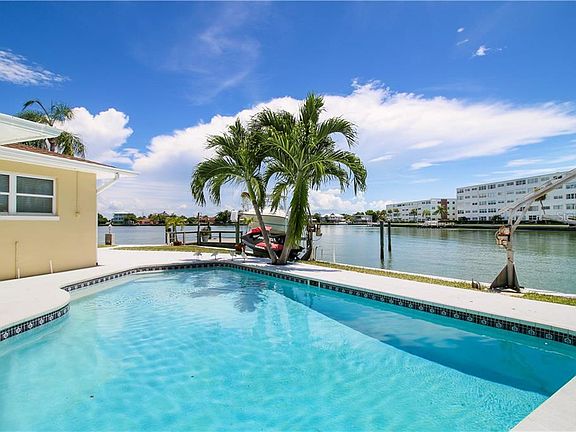 St Pete Beach Living at its finest. Imagine living walking distance to the beach on a cul-de-sac with multimillionaire dollar homes as neighbors and an empty lot to your left. Don't miss out on the opportunity to own one of the best lots in the great and desirable Bahia shores. Wide open non obstructed water-views with over 120 ft of sea wall. Newly resurfaced spacious pool with a fresh cool deck coating. Newer composite dock, boat and jet ski lifts and pilings for large boat parking. Open floor plan with a spacious kitchen and tremendous 360 views of the water from the living room and master bedroom. This is a great home for entertaining. Come put your own personal touch on this home or tear it down and build your dream home. Hurry before this one is gone. Property is being sold AS-IS.