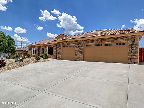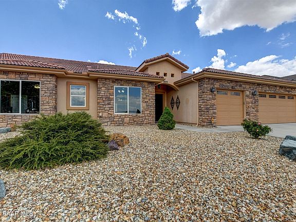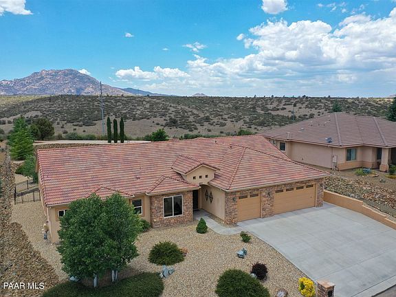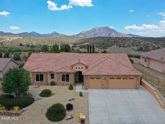 Nicely upgraded single level home in the highly desirable neighborhood of Pinon Oaks. Centrally located to Prescott, Prescott Valley, and Chino Valley. Spacious 2803 sq ft, 3 bedrooms and a den/office, 2 1/2 bath, 3 car garage. Beautiful new luxury vinyl plank flooring through out. Large kitchen and dining area with huge windows provides natural light through out the home. All windows upgrades with transitional shade coverings. View of the mountains from the front and the back. Fenced in back yard with 10x20 covered dog run, perfect for your fur babies to be safe outside!