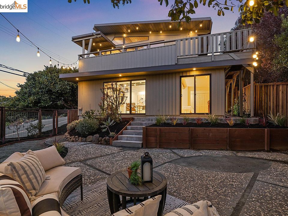 This artfully Designed Montclair Mid-Century retreat represents the perfect blend of urban and rural living, with a gorgeous hillside setting that gives you easy access to Montclair Village! Defined by walls of windows, soaring ceilings, gorgeous Bay views and rich architectural design, the Great Room is the perfect place to unwind after a long day. The beautifully updated and fully open kitchen allows you to stay connected to family and friends and still soak in the glorious views. Two bedrooms, one with a wall of windows and beautiful views, and a stylishly updated bath complete the upper living area. Downstairs, you’ll find a large family room and an adjoining bedroom with access directly out to the back garden. Attached to the main home, but with a separate entrance, is a hip office/workspace with concrete floors, heavy steel beams and convenient built-ins, giving you the perfect spot for a little “me” time! The West-facing garden and patio enjoy great natural light and there’s also a private side yard. The location is ideal, with a path on nearby Diaz Place that leads towards Montclair Village, where you can enjoy the numerous restaurants, shops and coffee houses! Close to everything but seemingly a world away!