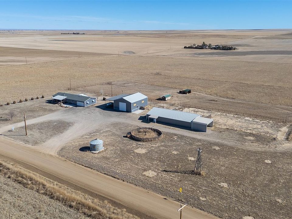 Great open views of the mountains and the plains. This property is set up with multiple outbuildings. One outbuilding is set up as a large shop, 40x48 with 12 ft overhang, has a large overhead door, has a half bath, is fully insulated, with water, heat, electrical (220V - separate from house electric meter) and has full RV hookups. The other large outbuilding is set up as a livestock barn with electric, tack room, 4 stalls, concrete walkway, and hay storage. The home and large outbuildings are low maintenance with steel siding. The home has a walkout basement with an attached pavilion for outdoor entertaining. There’s a wood stove inside to add an extra warmth during the cold winter months. Easy access pantry and an eat in kitchen make serving guests easy. After a long day of outdoor activities, enjoy a soak in the deep bathtub in the primary bathroom. Come enjoy the privacy, outbuildings, and large acreage out on the open plains.